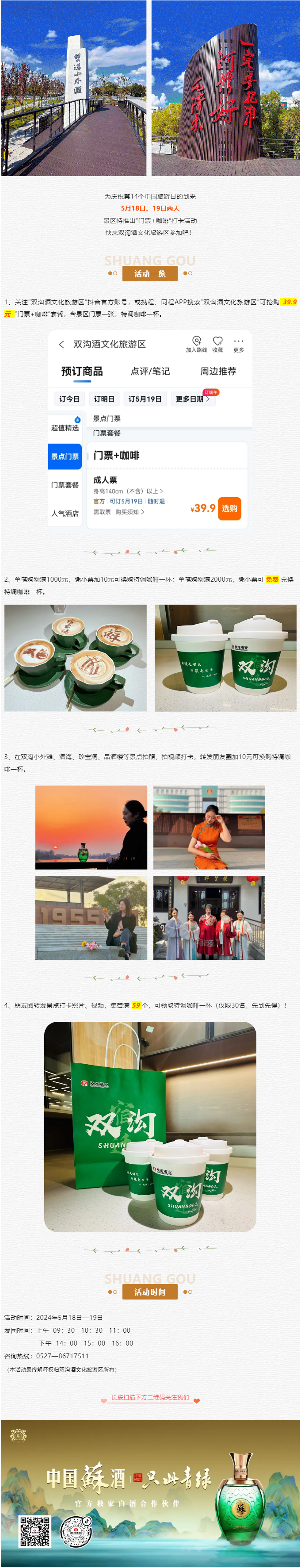 519中國旅游日丨暢游酒都,品味雙溝,快來景區打卡,免費領取特調咖啡嘍~
