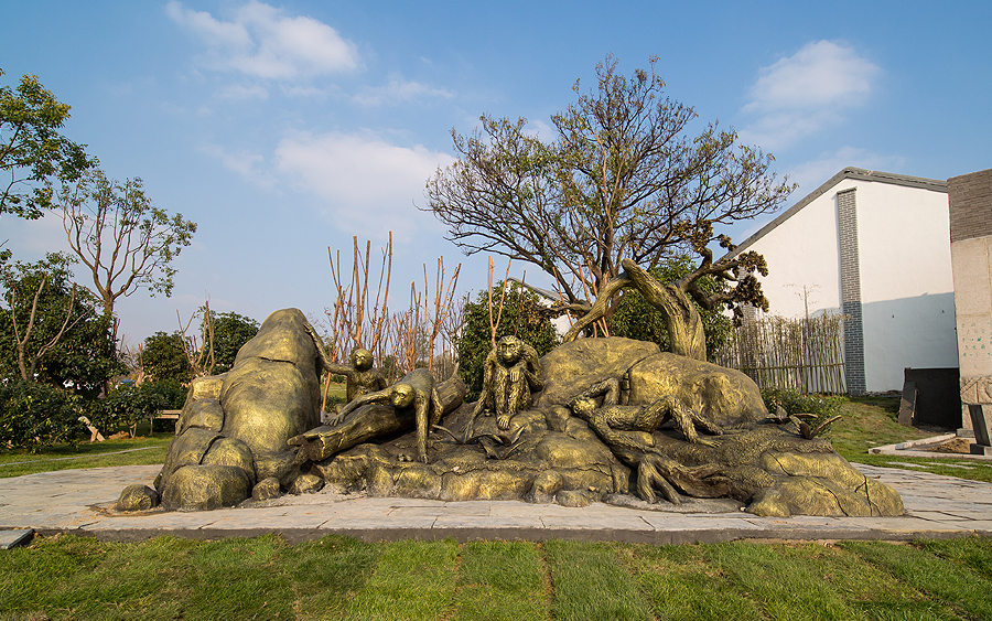 遠古時代的雙溝在詩人筆下是:鴻蒙初開,紫氣東來,見我雙溝,澤我長淮。猿攀石木而娛躍,鳥依老樹而徘徊。鷸蚌無爭,游離于清溪碧沼,鹿象悠哉,閑適在朝霧暮霾。一派祥和景象。1800萬年前的古猿們,因為誤食了經野果發酵的汁液后醉到不醒,經千萬年的進化后造就了萬眾矚目的醉猿化石,這些化石是1977年,中國科學院古脊椎動物與古人類研究所的李傳夔教授,在雙溝地區挖掘出來的,并命名為“雙溝醉猿”,同時也被世界考古專家譽為“亞洲第一猿”。詩人們因此慨嘆:人猿相揖千萬年,滄海桑田一夢間。黃土有情掩醉骨,一脈酒香萬古傳。