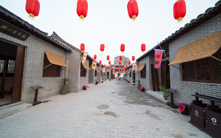 雙溝老街再現了明代雙溝街道的風貌。明清時期雙溝鎮因地處南來北往的商賈渡淮要沖,又處于泗州城北郊,商品經濟得到了很大發展,是個繁華的市鎮。鎮上大小作坊競釀好酒,酒旗酒簾高挑,燈籠高掛,徽派特色的樓宇店鋪鱗次櫛比,酒館、茶館、客棧、藥鋪、戲園等分布于青石街道兩側,綿延三里有余,一派繁忙景象。因街道狹窄,每到逢集,街上人頭攢動,擁擠不堪,尤其是在每年農歷三月二十八和四月初八的廟會期間,雙溝周邊蘇皖兩省八縣的人都會來參加廟會,人山人海,從街頭到街尾要走一兩個小時。
